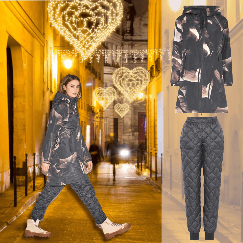 Kuosillinen sadetoppatakki ja toppahousut, vetävä pari!