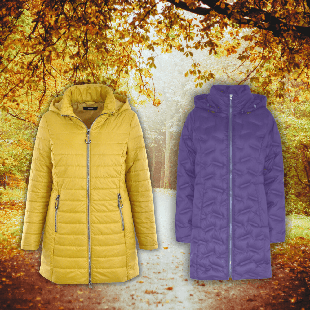Keltainen kevyttoppatakki ja lila untuvatakki valloittavat väreillään!